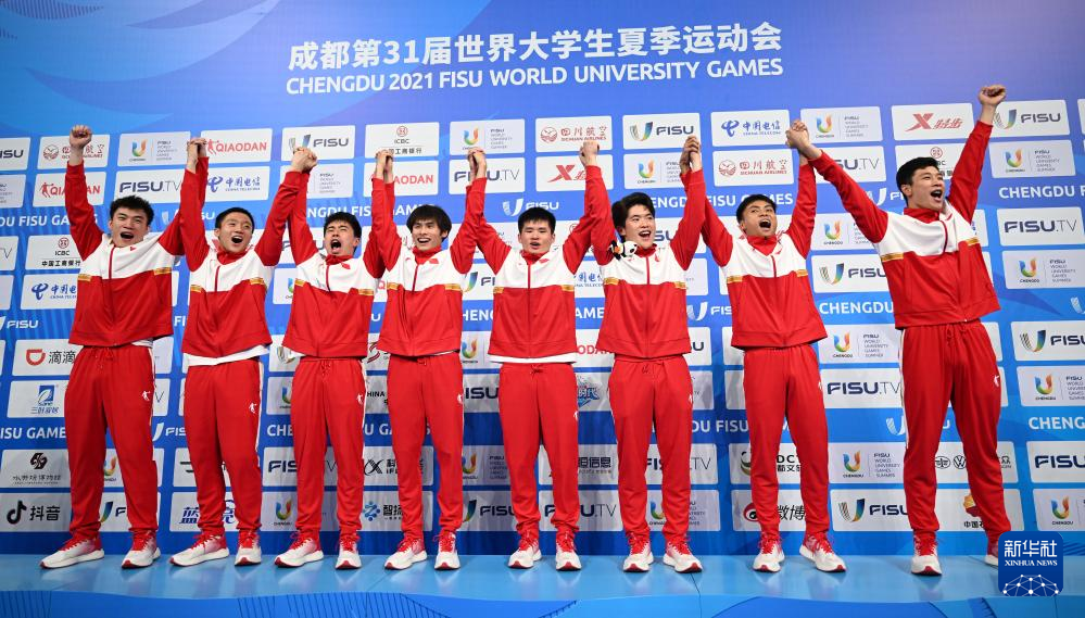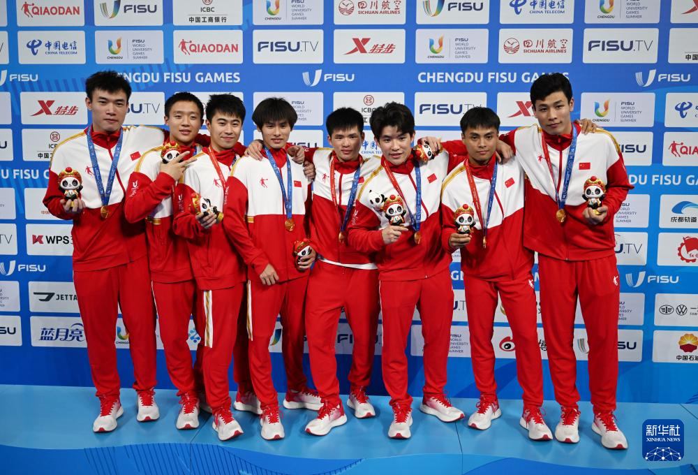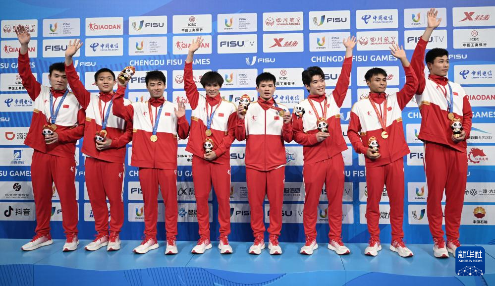 【新華社成都8月8日】第31回FISUワールドユニバーシティゲームズ夏季大会(成都ユニバ)は7日、中国四川省成都市で男子飛び込み団体の決勝が行われ、中国が4205・17点で金メダルを獲得した。pagebreak
