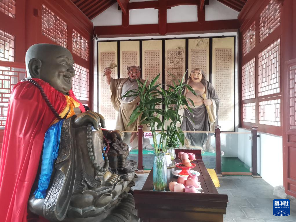 独楽寺の報恩院弥勒殿内部。(7月28日撮影、天津=新華社配信)