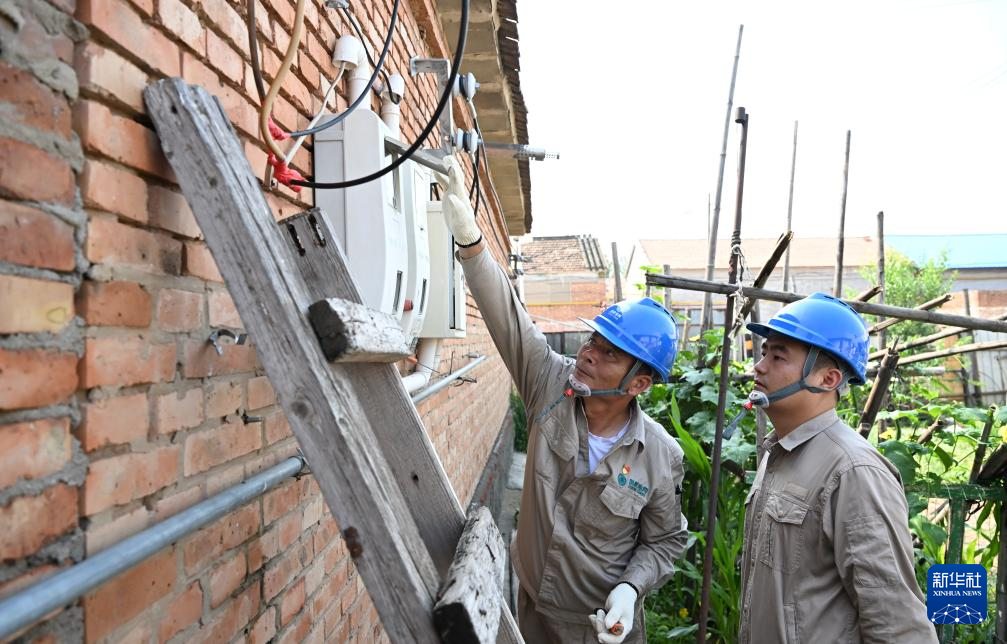 17日、天津市武清区黄花店鎮邵七堤村で、村民の家を訪れて設備の保守を行う電力会社の職員。(天津=新華社記者/孫凡越)pagebreak