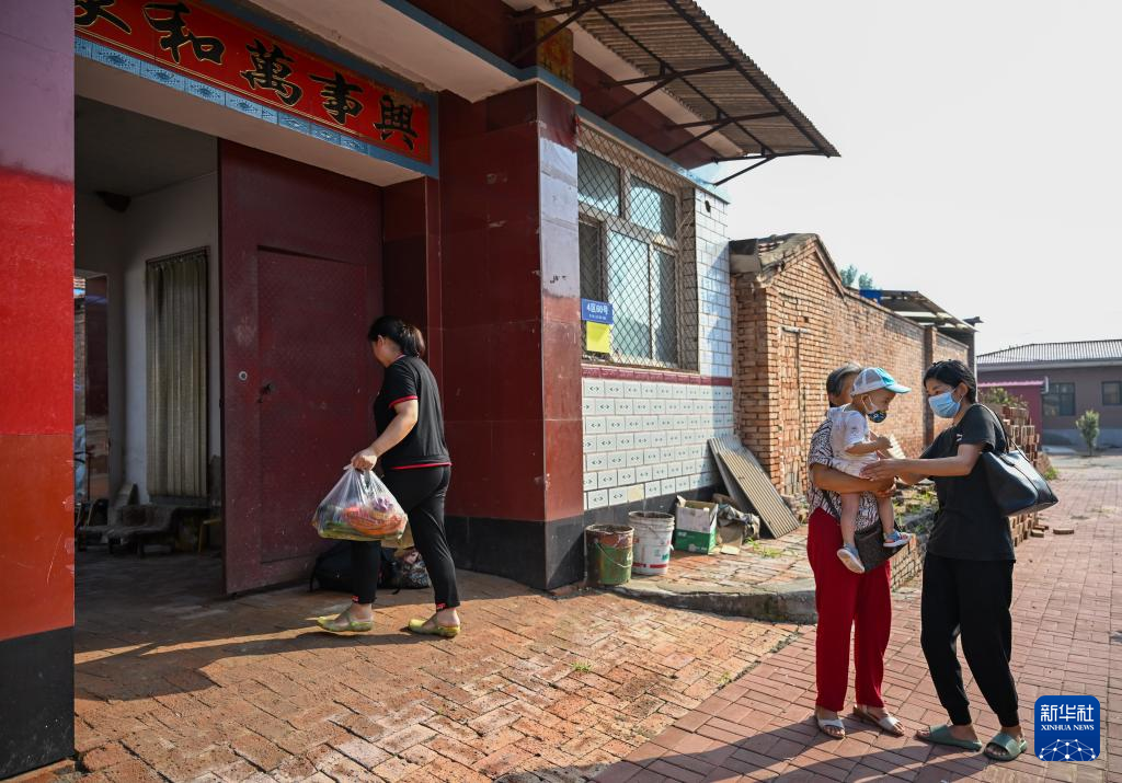17日、天津市武清区黄花店鎮邵七堤村に戻り、互いにあいさつをする村民。(天津=新華社記者/孫凡越)