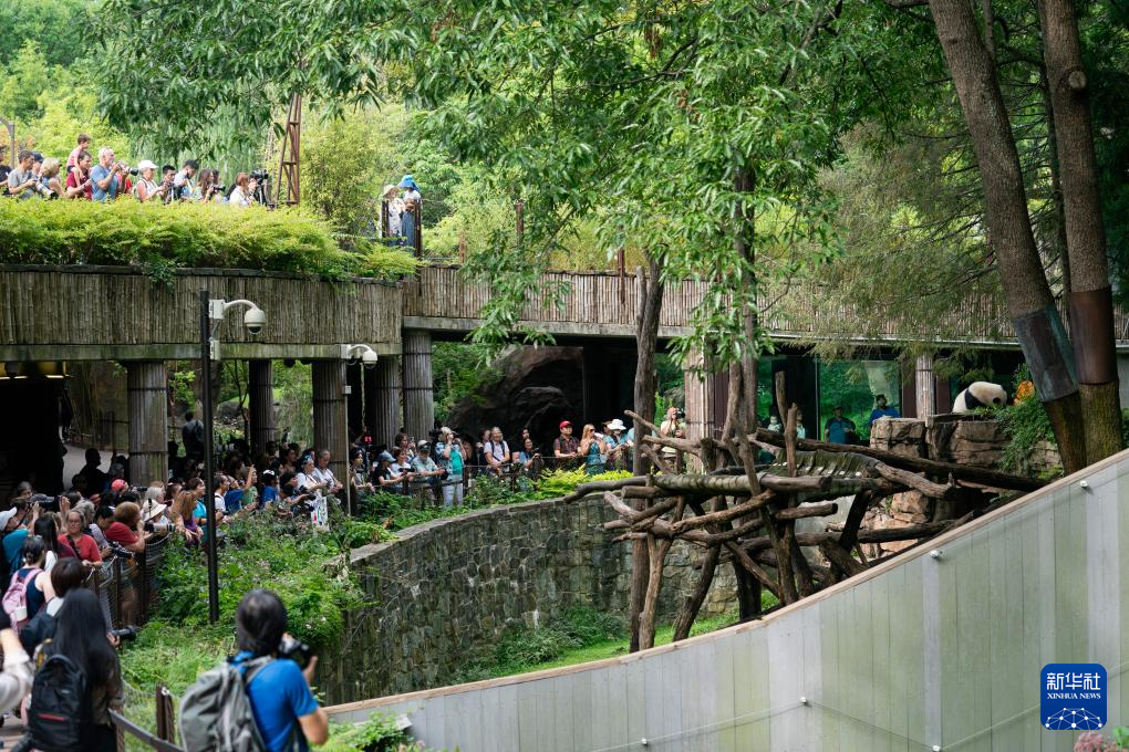 21日、スミソニアン国立動物園で小奇跡を見る観光客。(ワシントン=新華社記者/劉傑)pagebreak