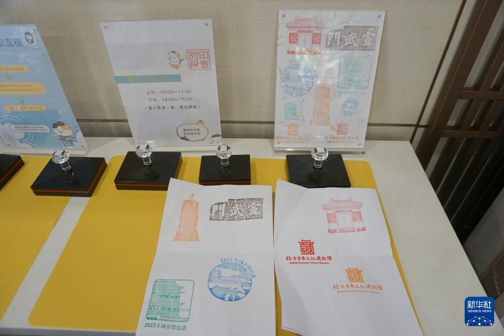 6日、北京宣南文化博物館のスタンプ台。(北京=新華社記者/許芸潁)