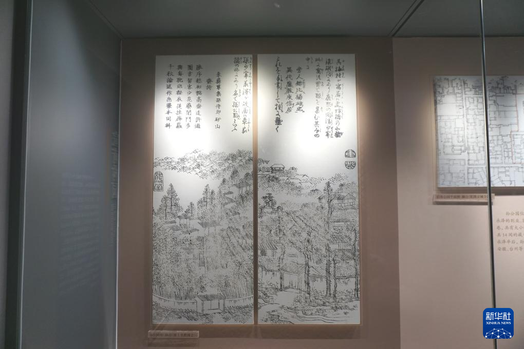 6日、北京宣南文化博物館に展示されている日本の岡田玉山(江戸時代中~後期の浮世絵師)の作品「唐土名勝図会」の挿絵の拡大図。(北京=新華社記者/許芸潁)