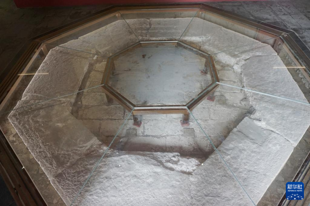 6日、北京宣南文化博物館に展示されている滲金(しんきん)多宝塔の台座。(北京=新華社記者/許芸潁)
