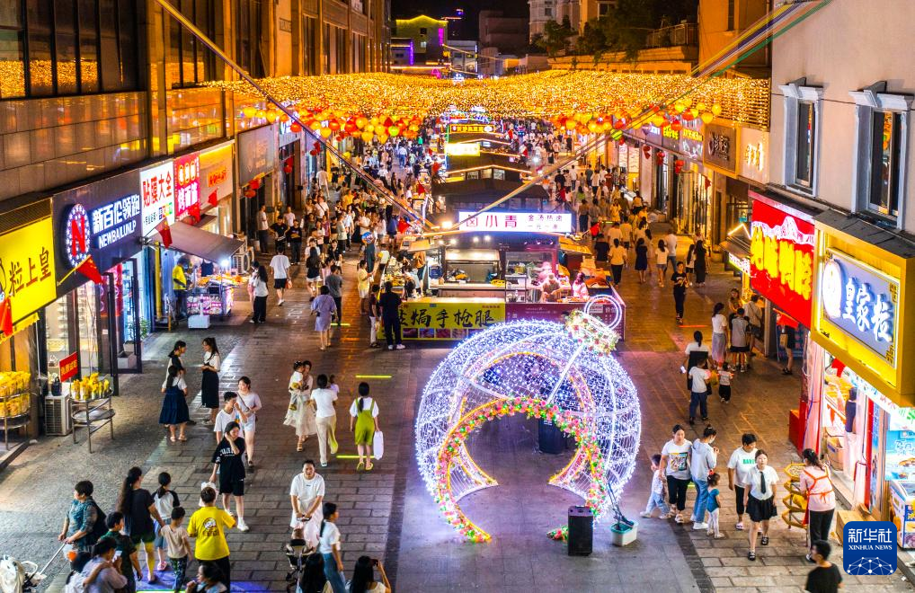 【新華社南京9月13日】中国江蘇省宿遷市宿城区にある宝竜二十四街の「尋味宿遷不夜街」は、レジャーやショッピング、飲食など、特色のある店舗が300軒以上集まり、夜になると多くの人でにぎわう。