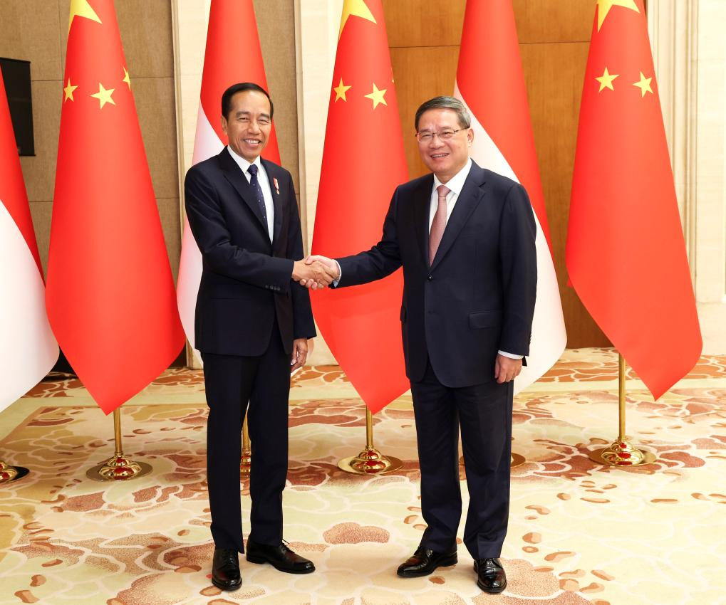 中国の李強(り・きょう)国務院総理は17日午前、第3回「一帯一路」国際協力サミットフォーラム出席のため中国を国賓訪問したインドネシアのジョコ大統領と北京で会談した。(北京=新華社記者/龐興雷)