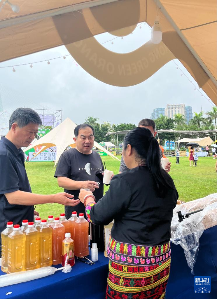 【新華社海口10月30日】中国海南省海口市の浜辺で28日、同省瓊中(けいちゅう)リー族ミャオ族自治県の特色ある農産物の展示即売会が開催され、屋台にはそれぞれ緑橙(グリーンオレンジ)や山蘭米(リー族に伝わる稲の品種)、ランブータン、山蘭酒(山蘭米で作った酒)などが並んだ。