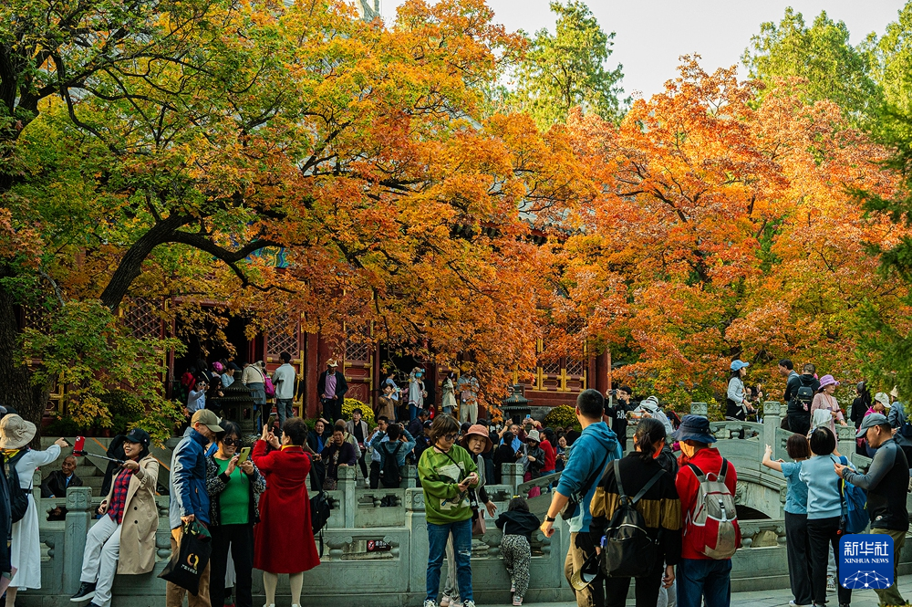 【新華社北京11月2日】中国北京市の香山公園は年間を通じて最もにぎわう時期を迎えた。園内では秋の深まりとともに紅葉が美しさを増し、市民や観光客が色鮮やかな秋の風景を堪能している。pagebreak