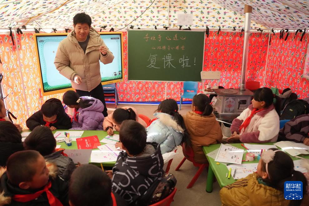 【新華社臨夏12月26日】中国甘粛省臨夏回族自治州積石山パオアン族トンシャン族サラール族自治県で起きた地震の影響で臨時休校していた県内の小中学校が25日、授業を再開した。県教育局によると、244校のうち安全が確認された学校で25~29日に登校を始め、条件の整っていない学校は教師が避難所に赴いて指導を行い、教育の早期復旧を目指す。pagebreak
