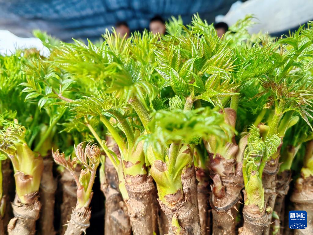 15日、寧安農場にある郷村振興産業パークの温室で育つタラノキ。(ハルビン=新華社配信)
