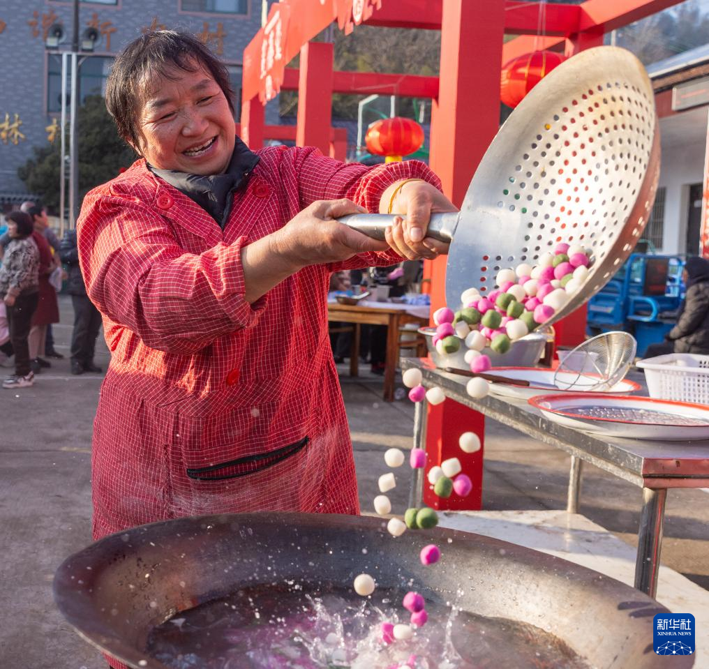 1月31日、浙江省諸曁市東和郷大林村の春節イベントで、湯円を作る村民。(諸曁=新華社配信/郭斌)pagebreak