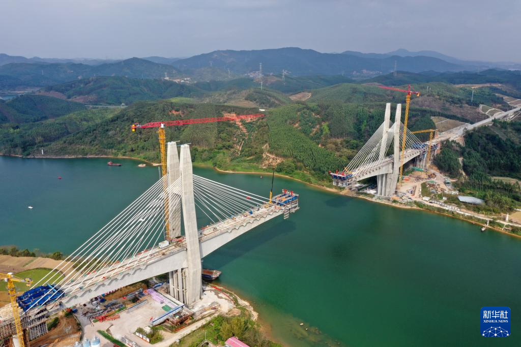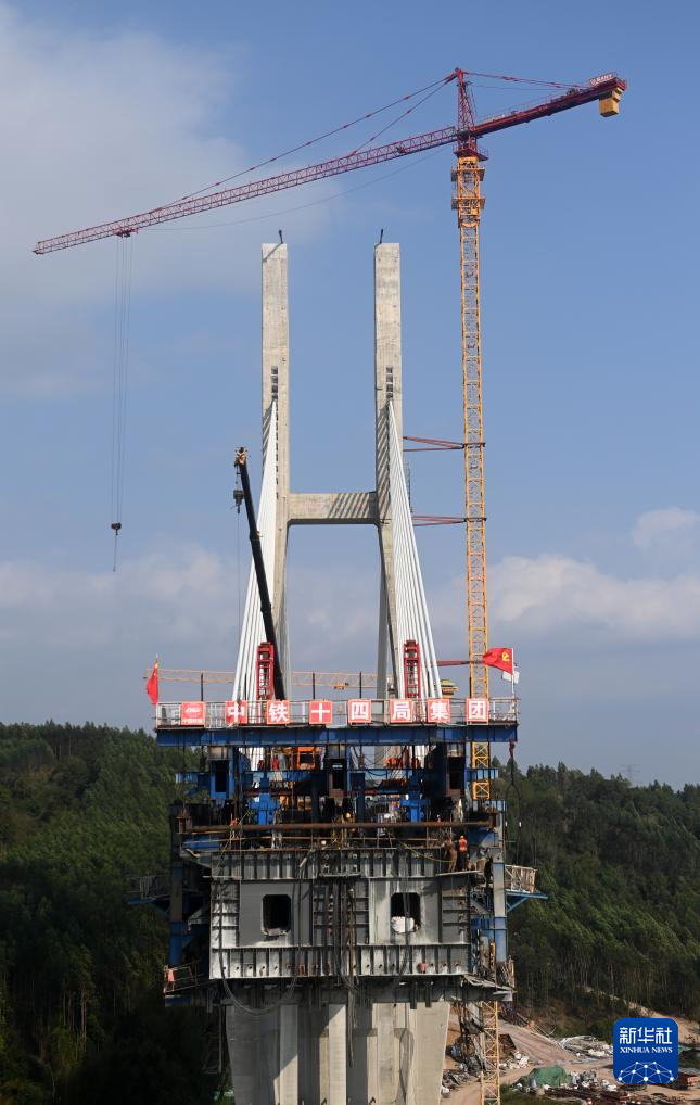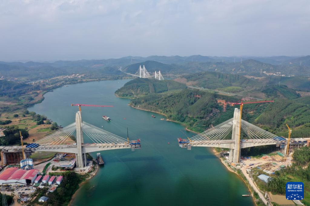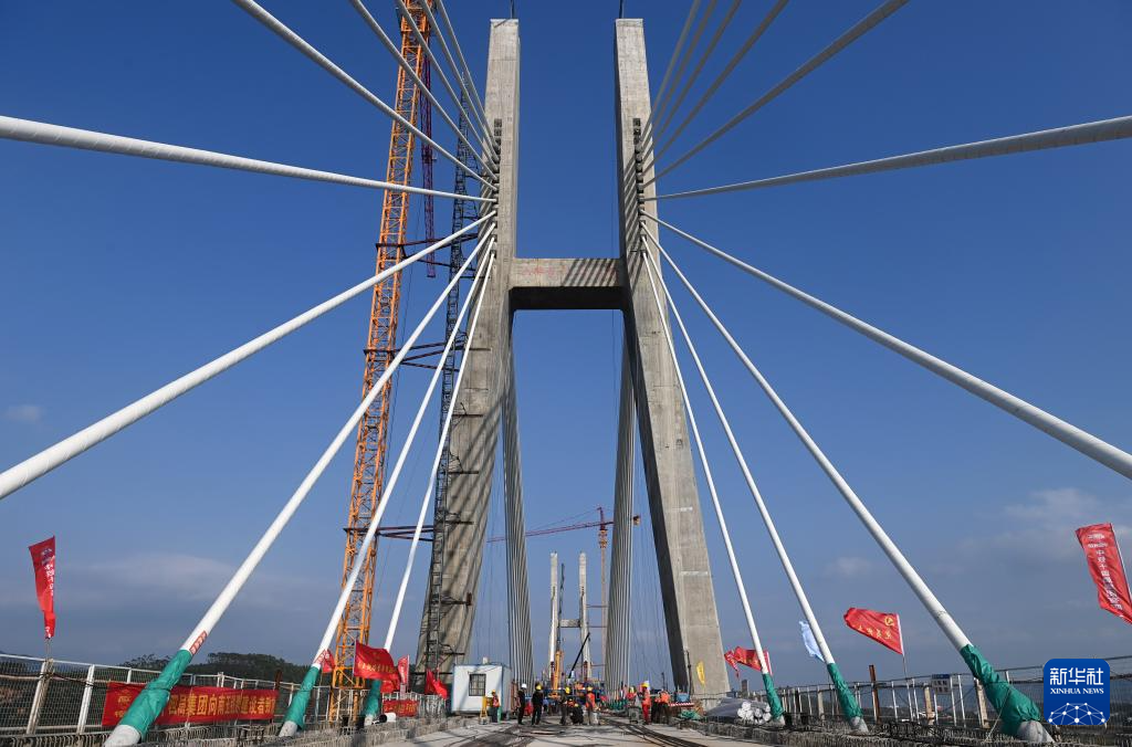 【新華社南寧2月23日】中国広西チワン族自治区南寧市と広東省深圳市を結ぶ南深高速鉄道の南寧-玉林区間で、六律邕江(りくりつようこう)特大橋の建設が急ピッチで進んでいる。大橋は主径間が320メートルに及び、同区間の成功を左右する重要プロジェクトと位置づけられている。