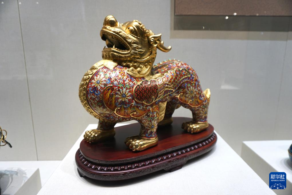 18日、景泰藍作品「貔貅(ひきゅう)」。(北京=新華社記者/許芸潁)