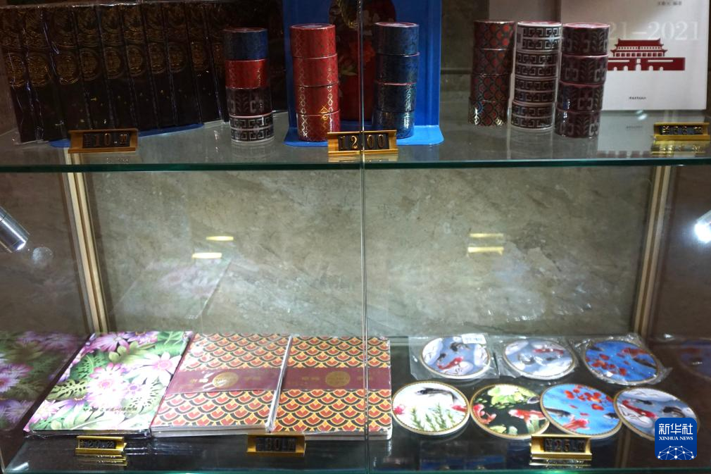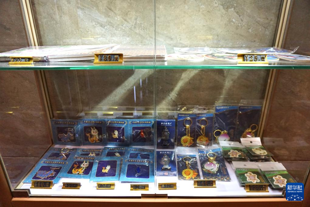 18日、景泰藍関連の文化クリエーティブ製品。(北京=新華社記者/許芸潁)