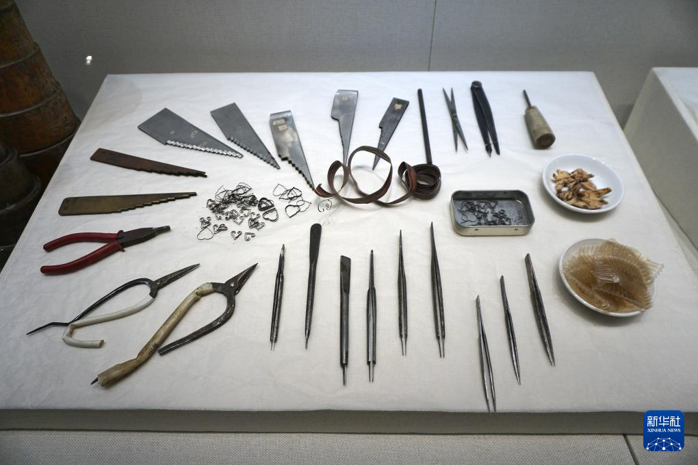18日、景泰藍の制作道具。(北京=新華社記者/許芸潁)
