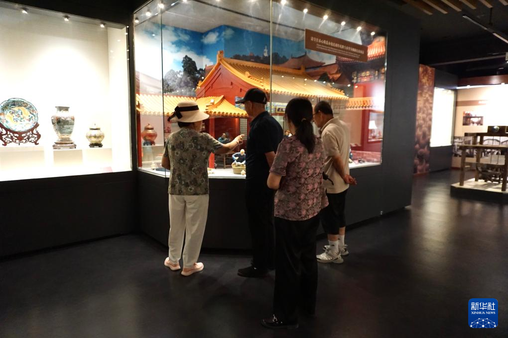 18日、景泰藍芸術博物館を見学する来館者。(北京=新華社記者/許芸潁)