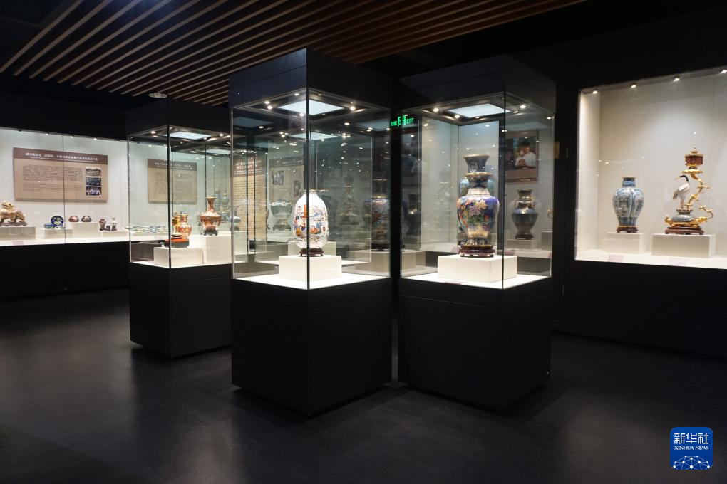 18日、景泰藍芸術博物館の展示ホール。(北京=新華社記者/許芸潁)