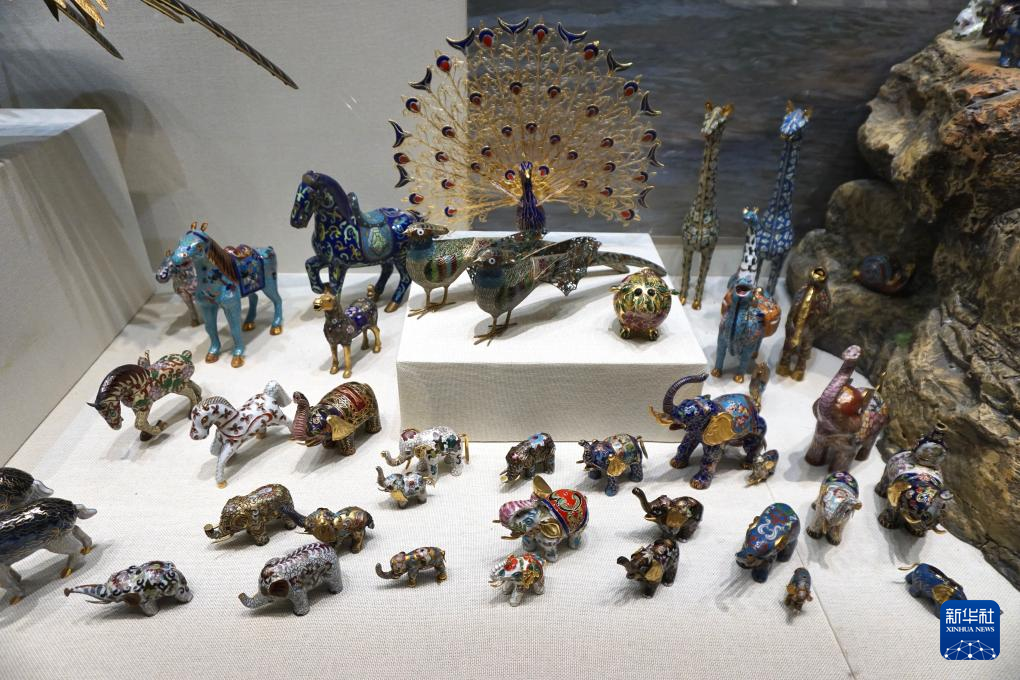 18日、さまざまな動物をかたどった景泰藍。(北京=新華社記者/許芸潁)