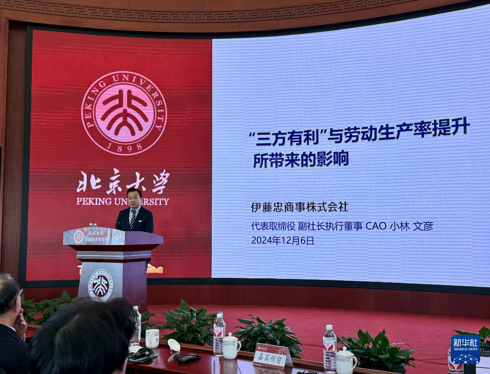 【新華社北京12月9日】中国の北京大学は6日、日本の著名人を招いた特別シリーズ講座を開き、伊藤忠商事の小林文彦副社長が「『三方よし』と労働生産性の向上」をテーマに講演した。