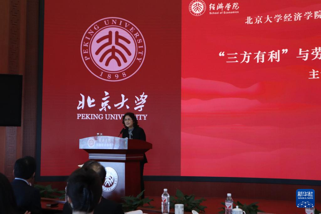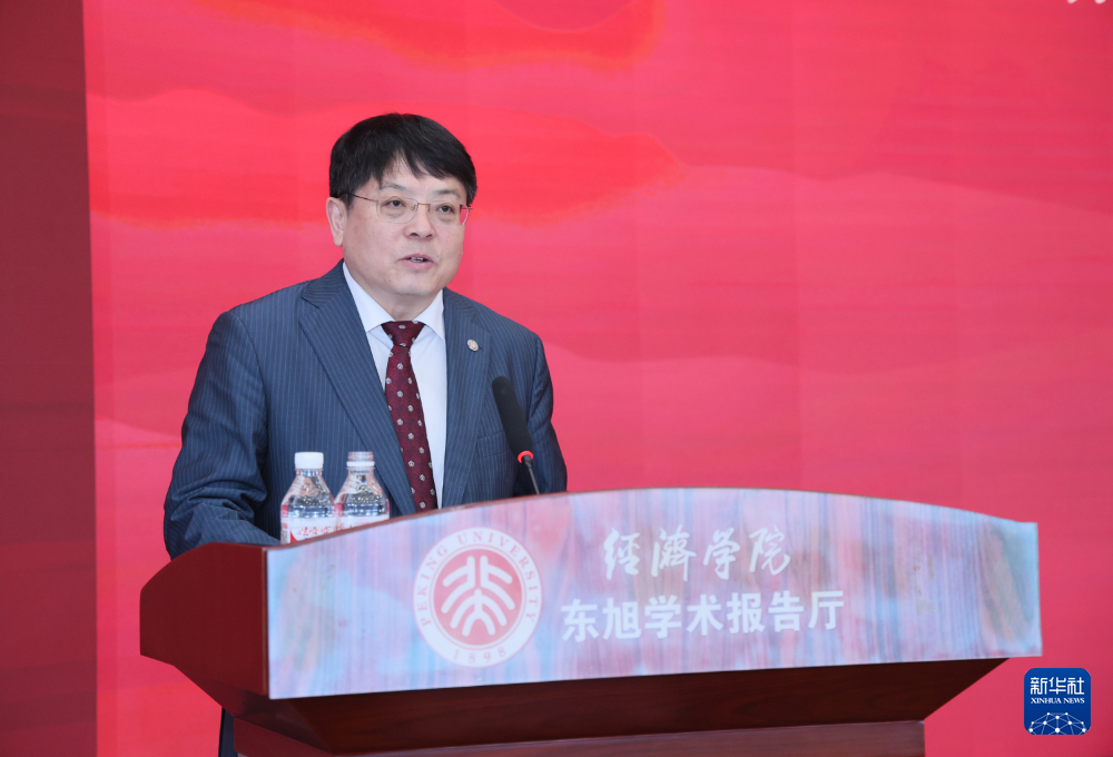 6日、講演会であいさつする北京大学の董志勇副学長。(北京=新華社記者/郭丹)