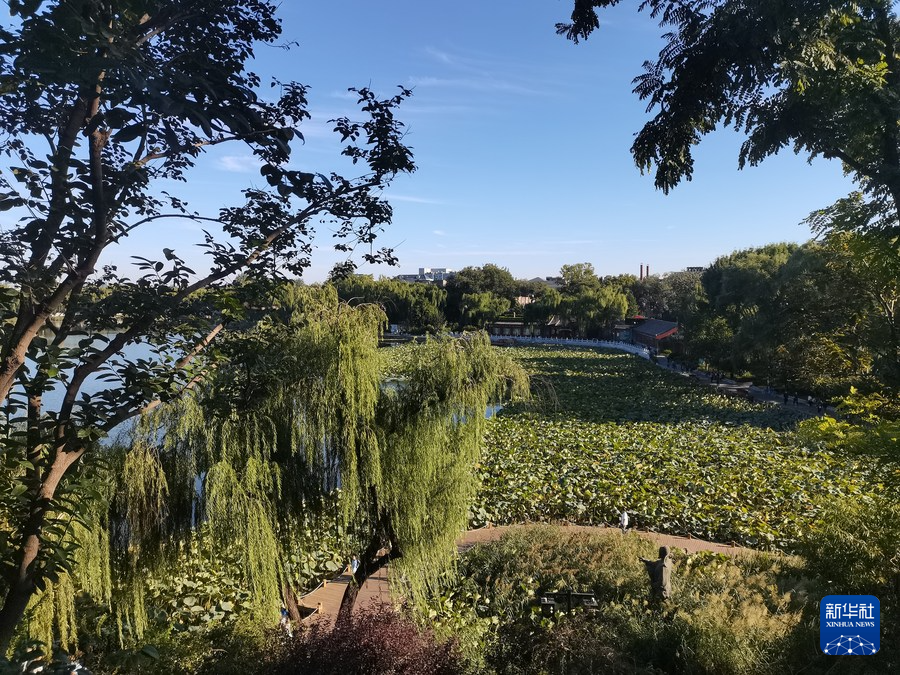 匯通祠から見た西海の風景。(9月22日撮影、北京=新華社記者/王巍)