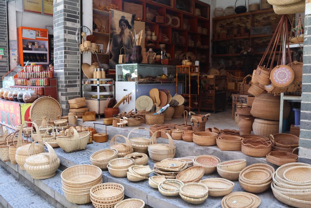 大圩古鎮の竹細工店。(8月7日撮影、桂林=新華社記者/藍建中)