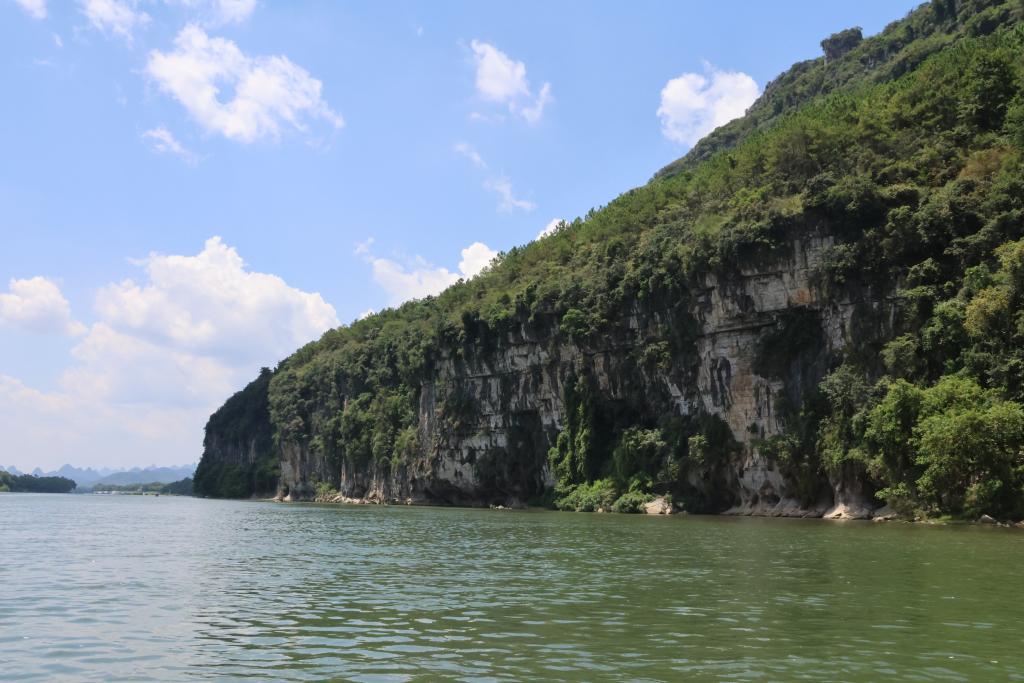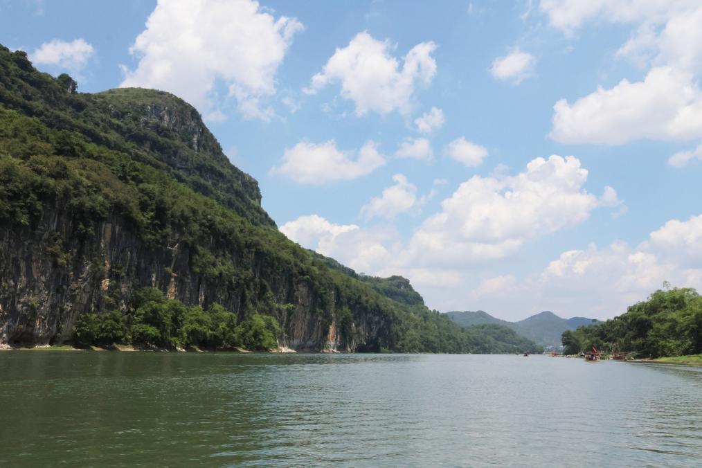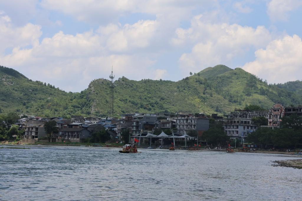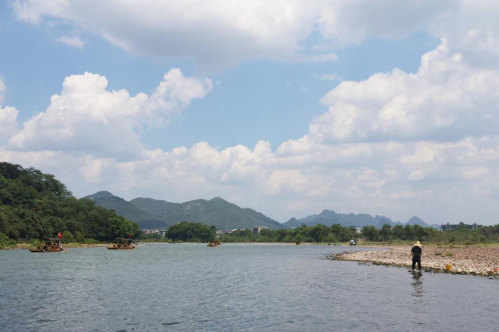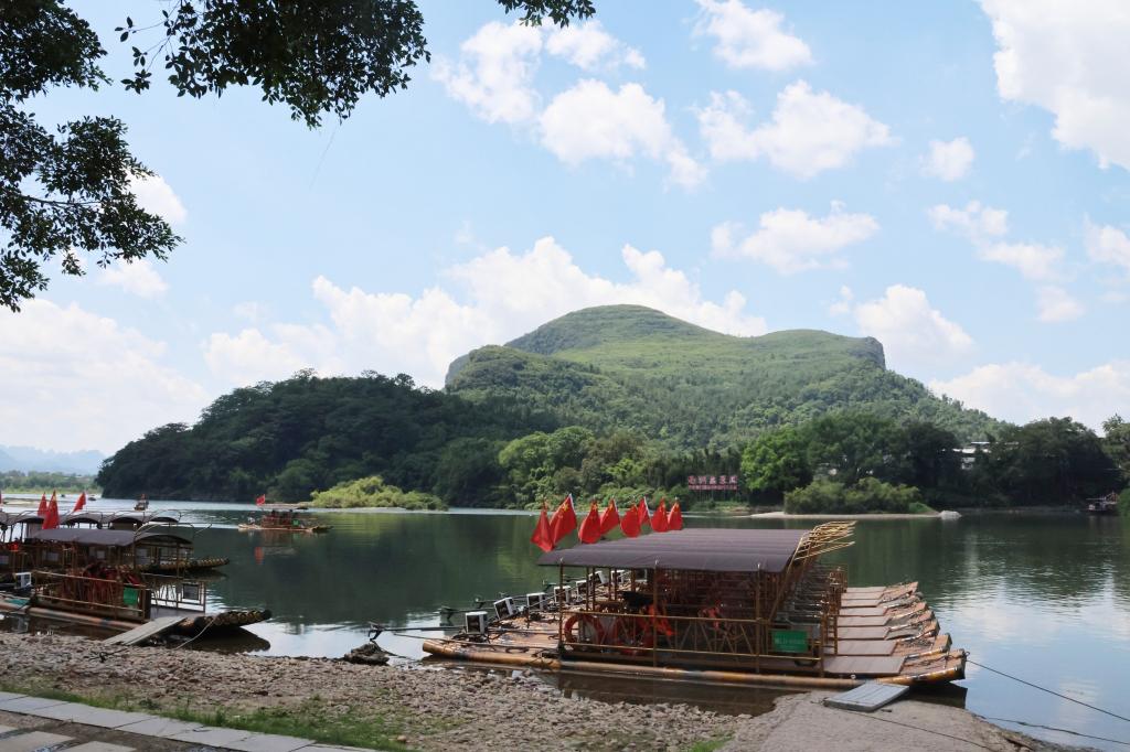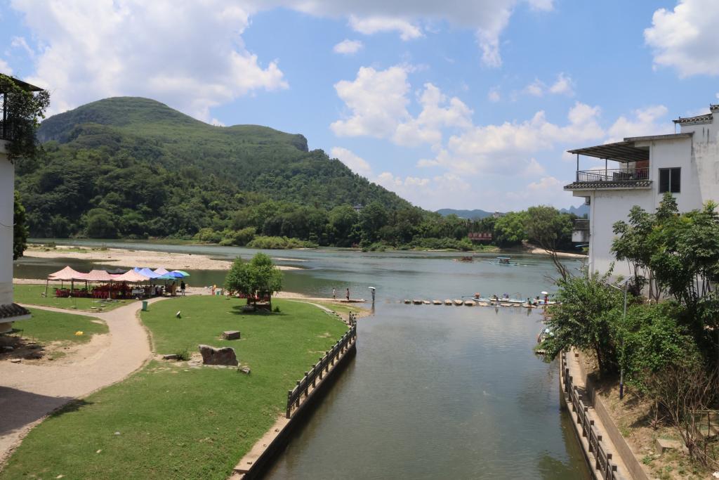 大圩古鎮の傍らを流れる漓江。(8月7日撮影、桂林=新華社記者/藍建中)