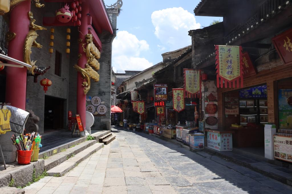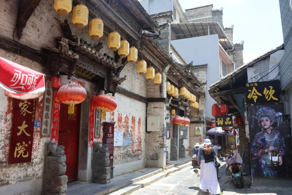 集落が形成されたのは漢代で、北宋時代に商業の町として栄えた。古い町並みが漓江沿いに2キロにわたり続き、青石が敷き詰められた街道の両側には保存状態の良い古い家屋が並ぶ。映画やドラマのロケ地としても知られ、郷土色豊かな小吃(軽食)や伝統文化、地元の風習が訪れた人たちを魅了している。