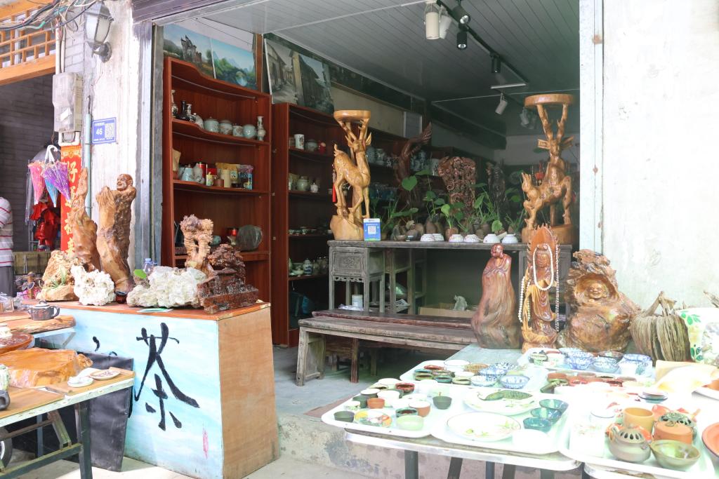 大圩古鎮の工芸品店。(8月7日撮影、桂林=新華社記者/藍建中)