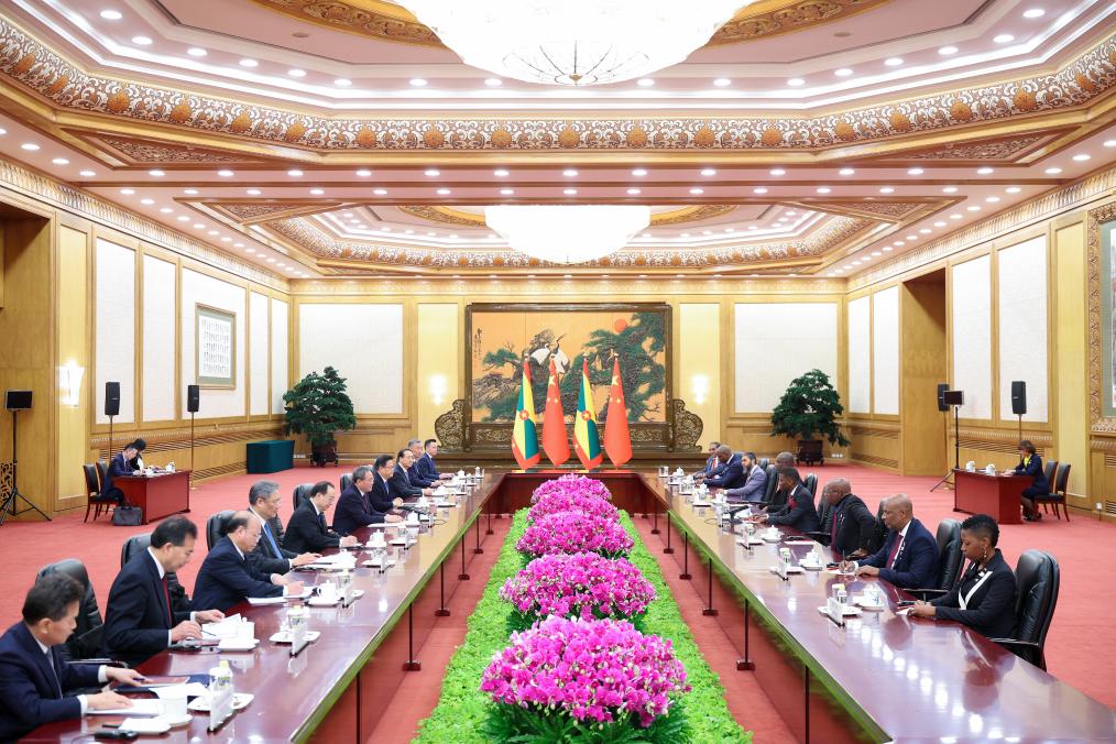 中国の李強(り・きょう)国務院総理は13日、中国を公式訪問したグレナダのミッチェル首相と北京の人民大会堂で会談した。(北京=新華社記者/劉彬)