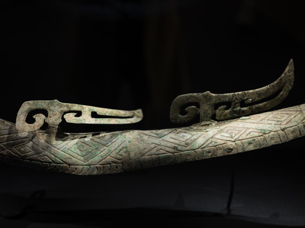 1月23日、四川省広漢市の三星堆博物館に展示されている青銅蛇(商代)。 (成都=新華社記者/薛晨)