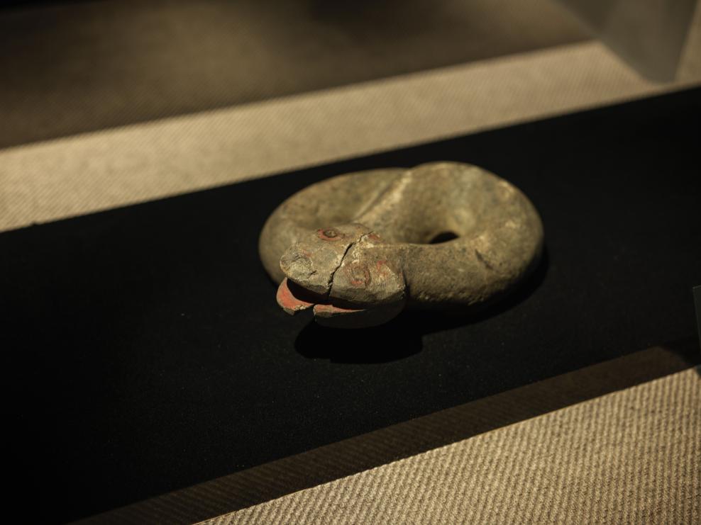 1月23日、四川省成都市の金沙遺跡博物館に展示されている石蛇(商周時代)。(成都=新華社記者/薛晨)
