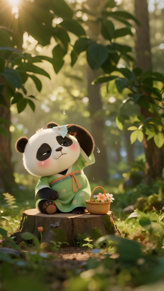 草木が生い茂る中で一息をつく様子を表した壁紙。(北京=新華社配信)