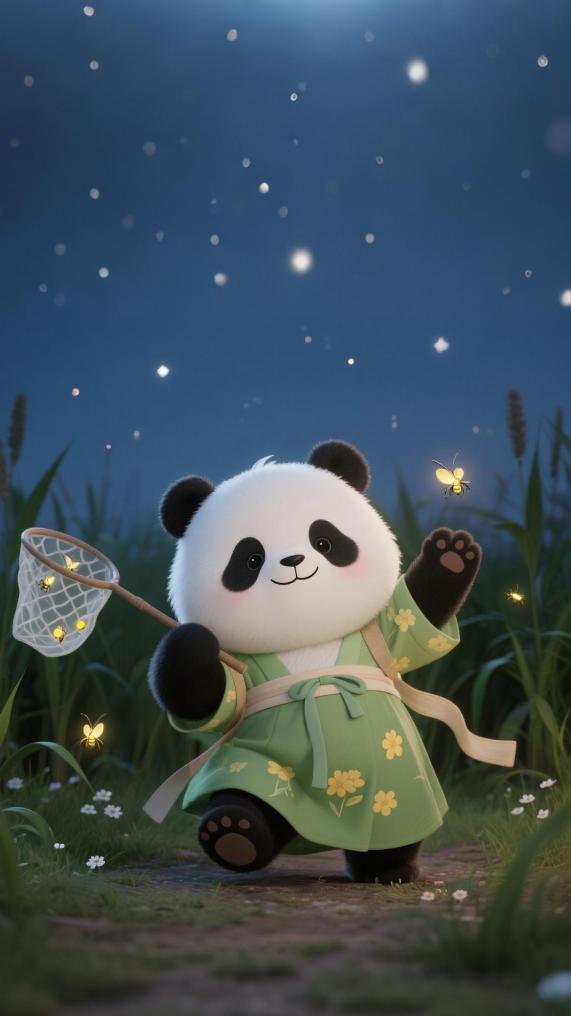 蛍狩りの様子を表した壁紙。(北京=新華社配信)