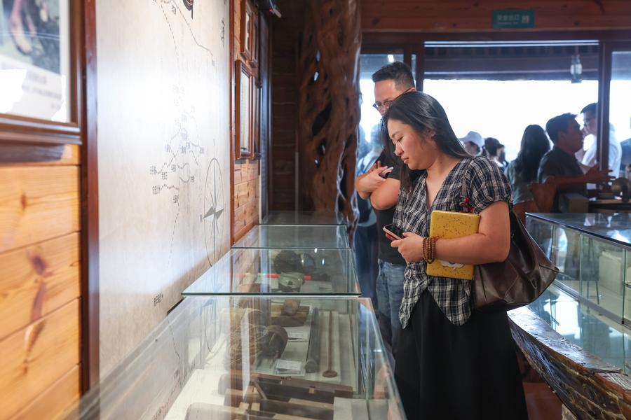 海南省瓊海市の更路簿博物館を見学する来館者。(7月31日撮影、瓊海=新華社記者/張麗蕓)