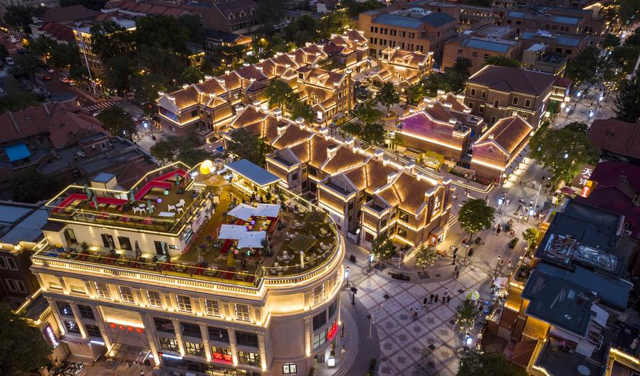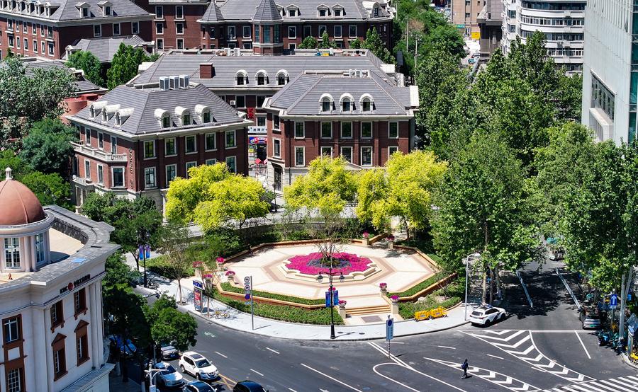 天津市の五大道文化観光区にある「民園1920街区」。(7月11日、ドローンから、天津=新華社記者/趙子碩)