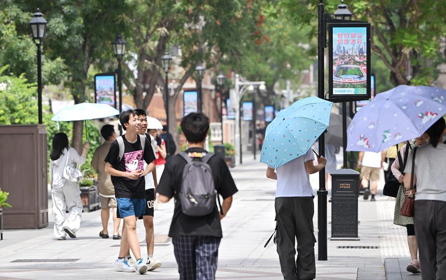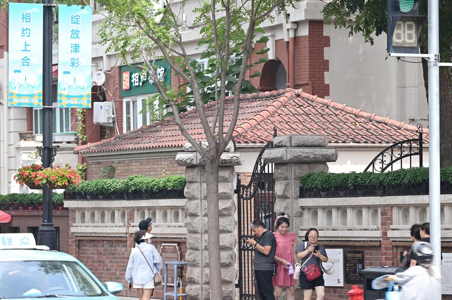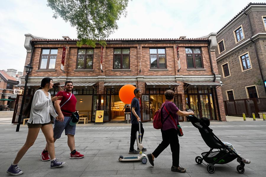 天津市にある観光スポット「五大道」の歩行者天国を散策する観光客。(7月9日撮影、天津=新華社記者/趙子碩)