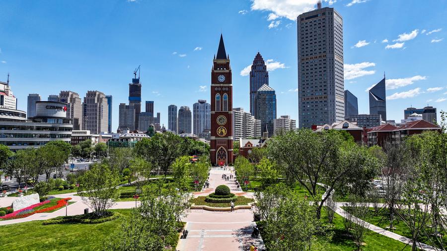 天津市中心市街地の風景。(6月3日、ドローンから、天津=新華社記者/趙子碩)