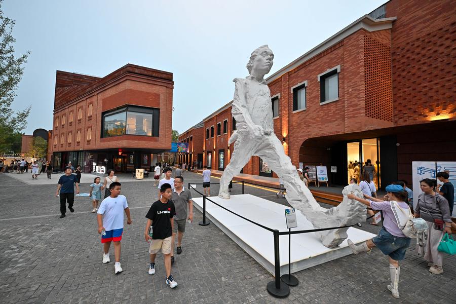 天津市の「天美芸術街区」を散策する市民。(7月12日撮影、天津=新華社記者/孫凡越)