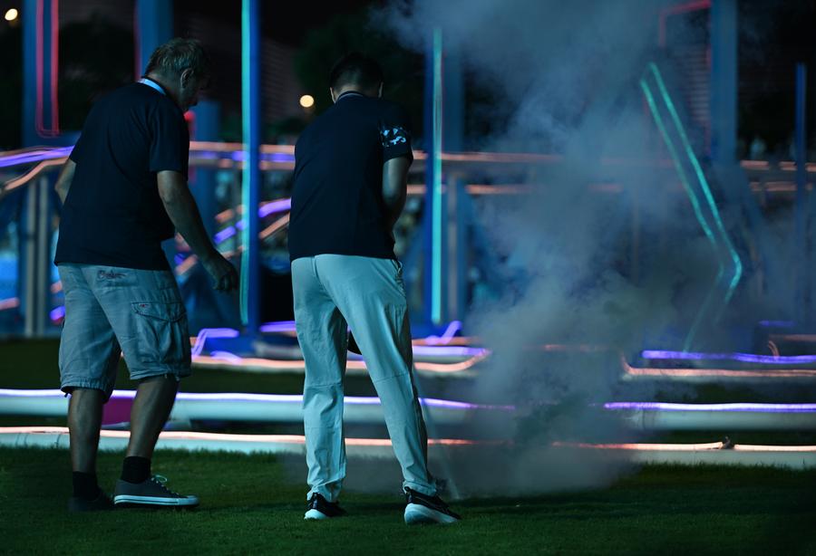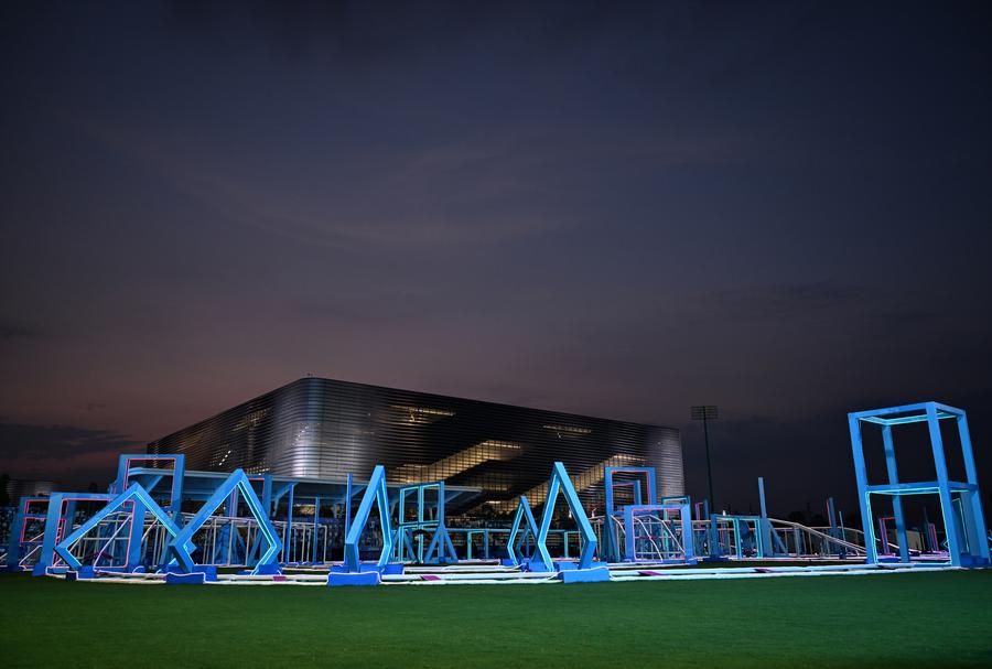 16日、ワールドゲームズ成都大会ドローンレースの会場となる東安湖スポーツ公園の屋外陸上競技場。(成都=新華社記者/張博文)