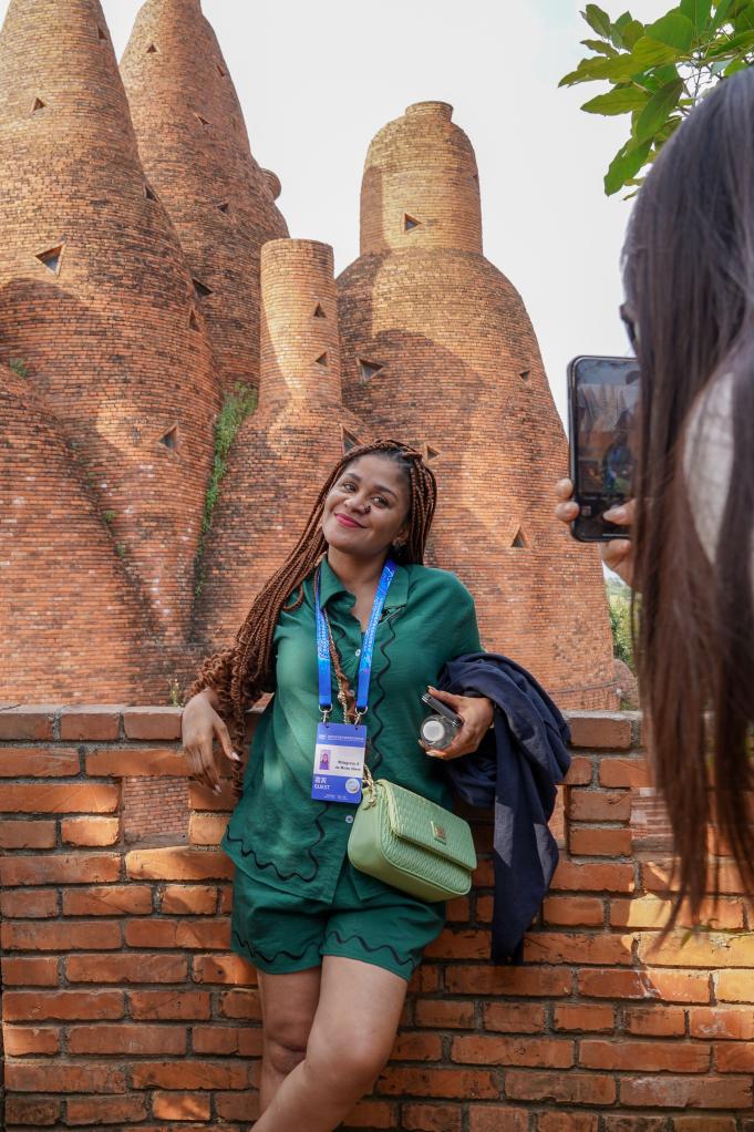 8日、雲南省紅河ハニ族イ族自治州弥勒市の「東風韻小鎮」で記念撮影するフォーラム参加者。(昆明=新華社記者/彭奕凱)