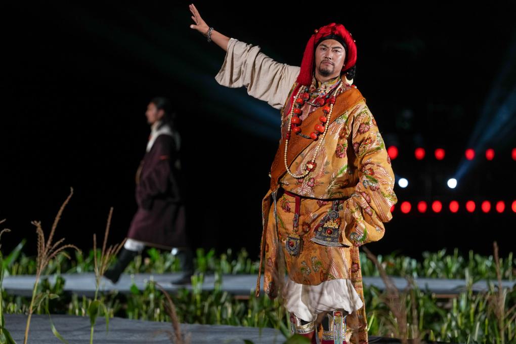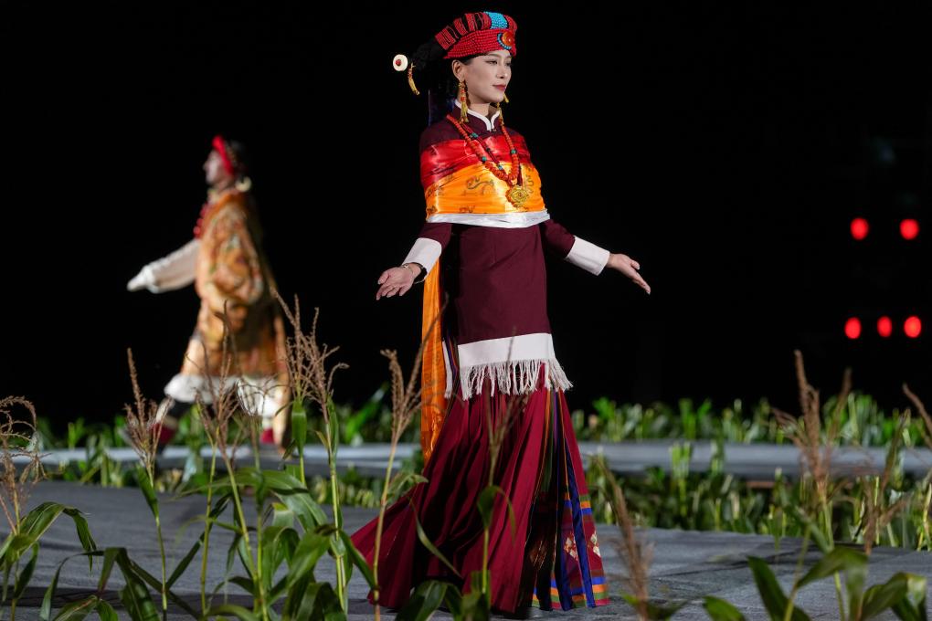 【新華社郷城9月23日】中国四川省カンゼ・チベット族自治州郷城県のトウモロコシ畑で20日、チベット族のファッションショーが開かれた。伝統と現代性を兼ね備えた衣装が披露され、会場は地元住民や観光客でにぎわった。