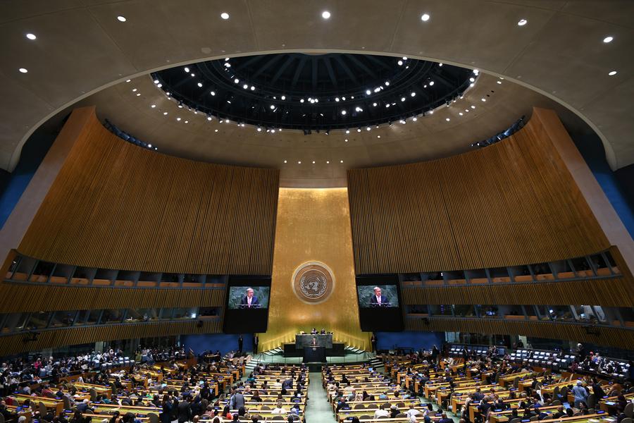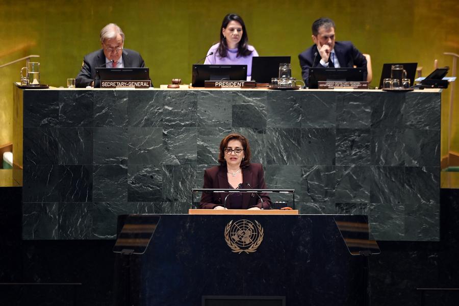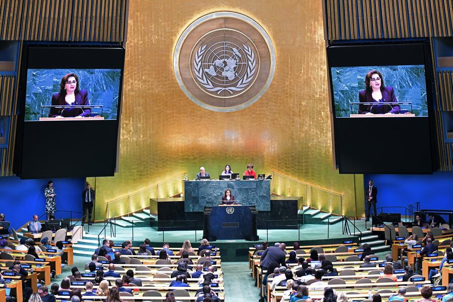 22日、ニューヨークの国連本部で開かれた北京世界女性会議30周年記念ハイレベル会合。(国連=新華社記者/李睿)
