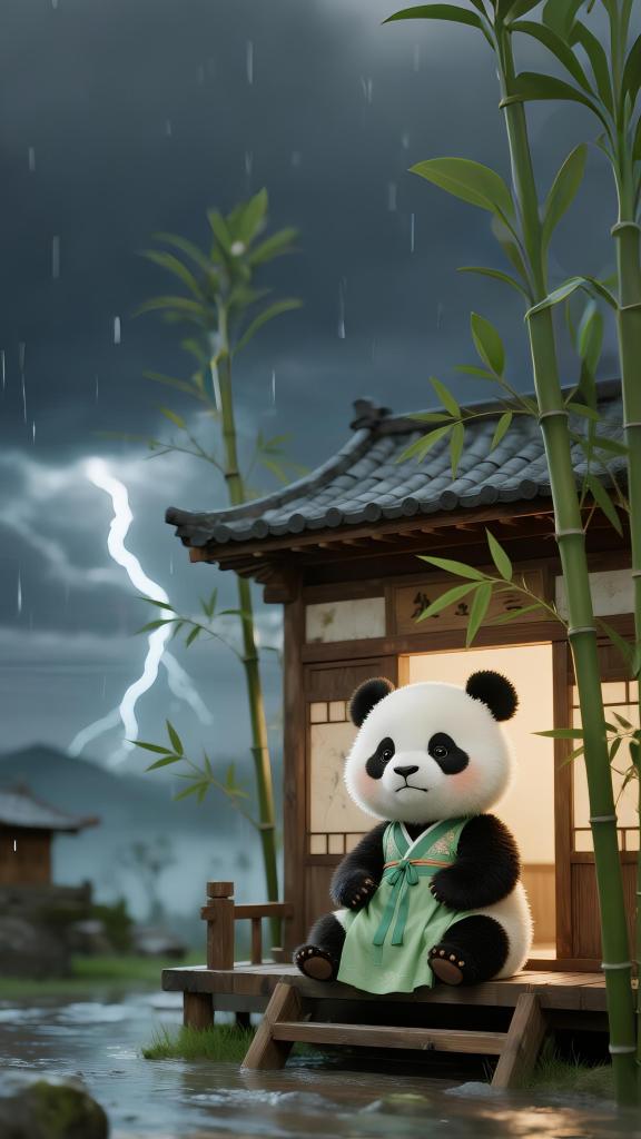 雷の音におびえながら雨をしのぐ様子を表した壁紙。(北京=新華社配信)