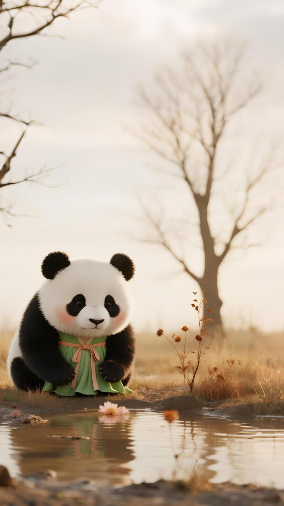 枯れ始めた河や草花を見て感傷にひたる様子を表した壁紙。(北京=新華社配信)