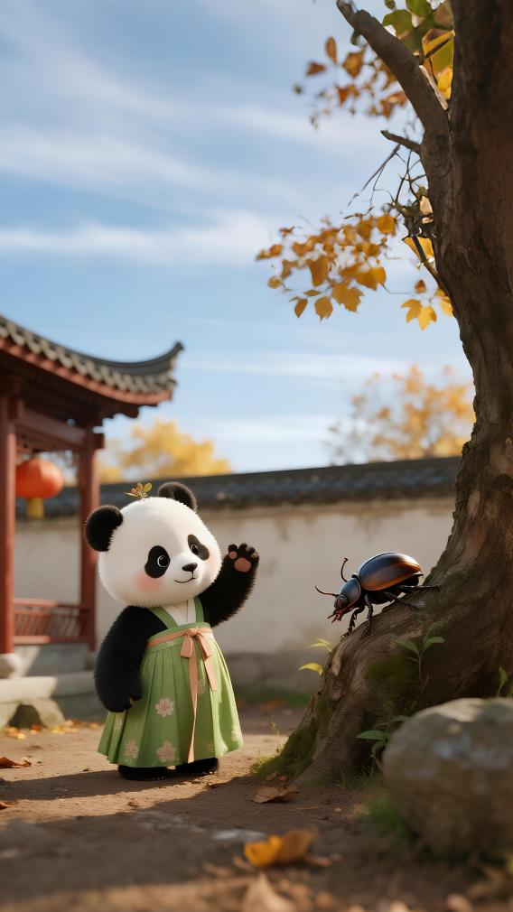 カブトムシが土に潜るのを見守る様子を表した壁紙。(北京=新華社配信)