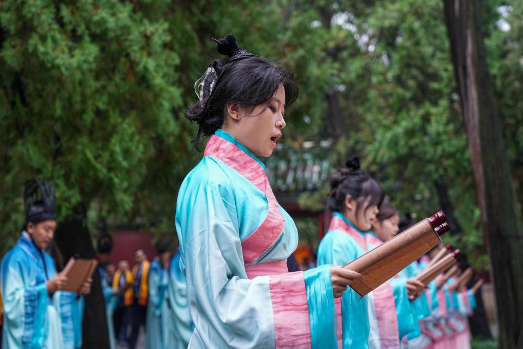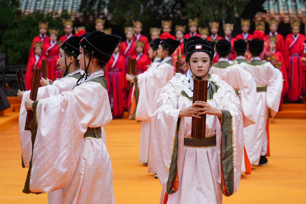 28日、乙巳年祭孔大典で披露されたパフォーマンス。(曲阜=新華社記者/朱崢)