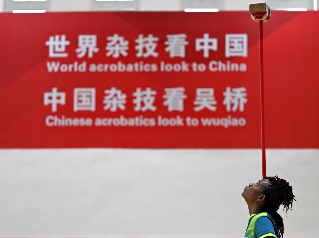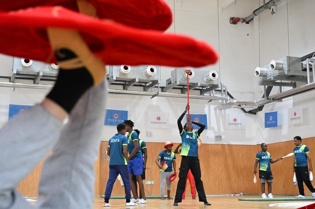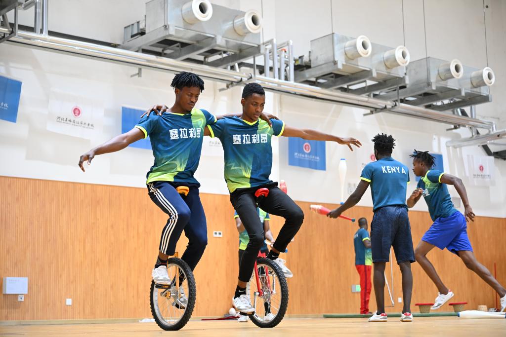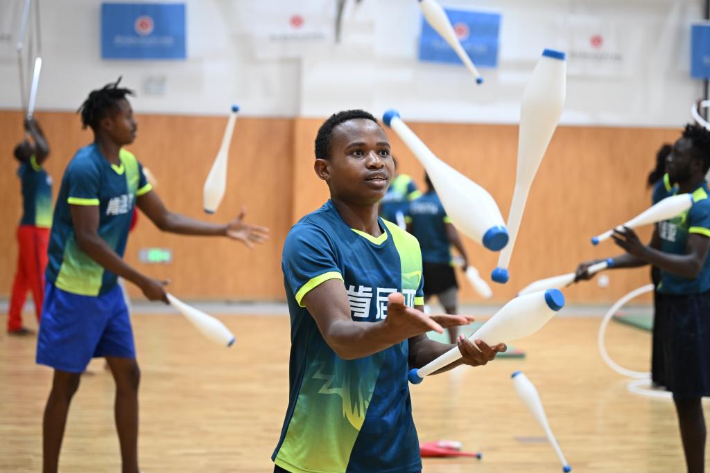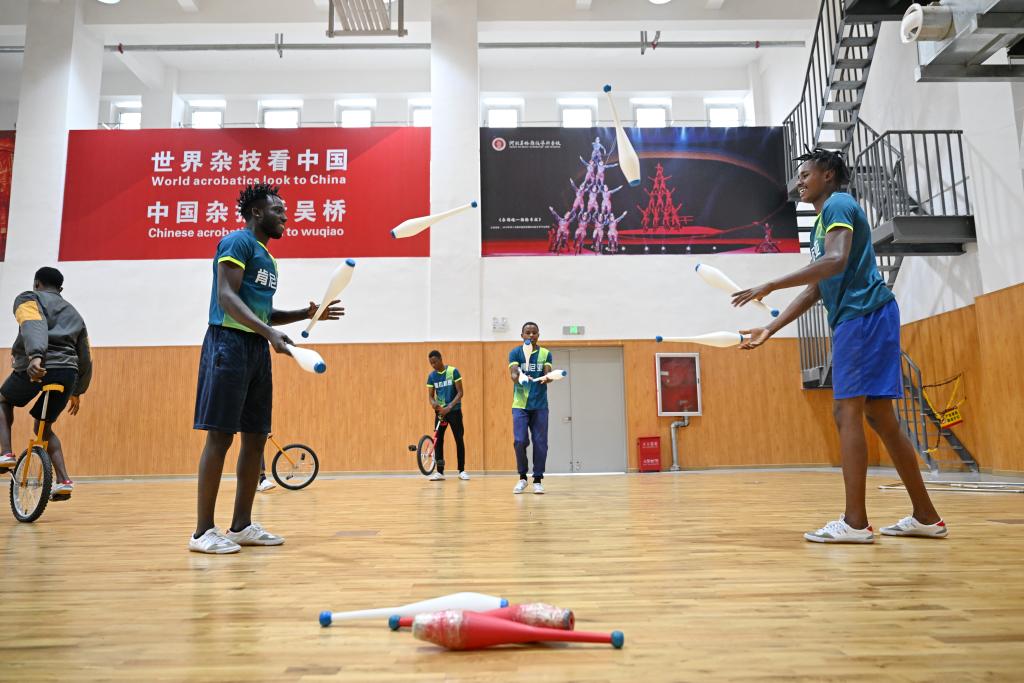 28日、河北省呉橋県の呉橋雑技芸術学校で練習に励むケニア人留学生。(呉橋=新華社記者/牟宇)