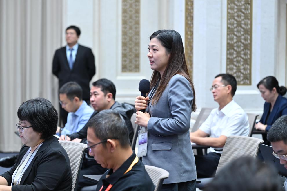 29日、国務院新聞弁公室が水利分野における発展の成果をテーマに開いた「第14次5カ年規画の質の高い達成」に関する記者会見で質問する記者。(北京=新華社記者/李鑫)