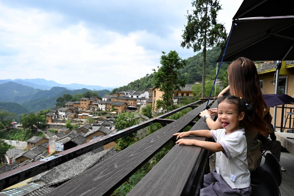 18日、陽産村で風景を楽しむ観光客。(黄山=新華社記者/黄博涵)